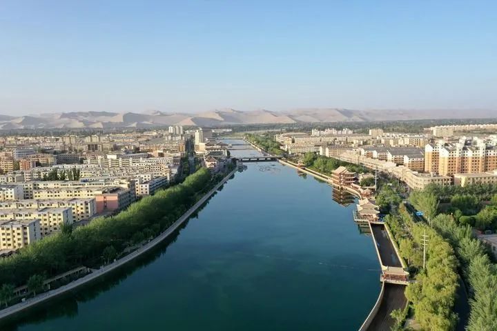 乘飛機(jī)從甘肅省會蘭州往西飛行約兩個小時后,茫茫戈壁上一個綠色小點出現(xiàn)在視線里。隨著飛機(jī)高度下降,俯瞰下去,一片多邊形的綠洲逐漸顯現(xiàn),如一塊美麗寶石。