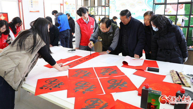 春節(jié)臨近,民樂(lè)縣組織群眾文化志愿者服務(wù)隊(duì)開(kāi)展“翰墨迎春”公益文化活動(dòng),志愿者現(xiàn)場(chǎng)揮毫潑墨書(shū)寫(xiě)春聯(lián),為群眾書(shū)寫(xiě)春聯(lián)和“福”字,讓群眾在家門口享受“文化大餐”,迎接新春佳節(jié)的到來(lái)。