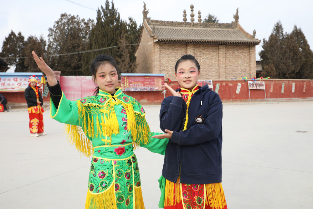 王欣怡、王欣語姐妹倆自小學(xué)習(xí)舞蹈,看著社火長大的她們已連續(xù)兩年參加當(dāng)?shù)厣缁鸨硌荨?ldquo;社火表演熱鬧有趣,就像一種角色扮演,讓我們對傳統(tǒng)文化有了直觀的感受。”王欣怡說。
