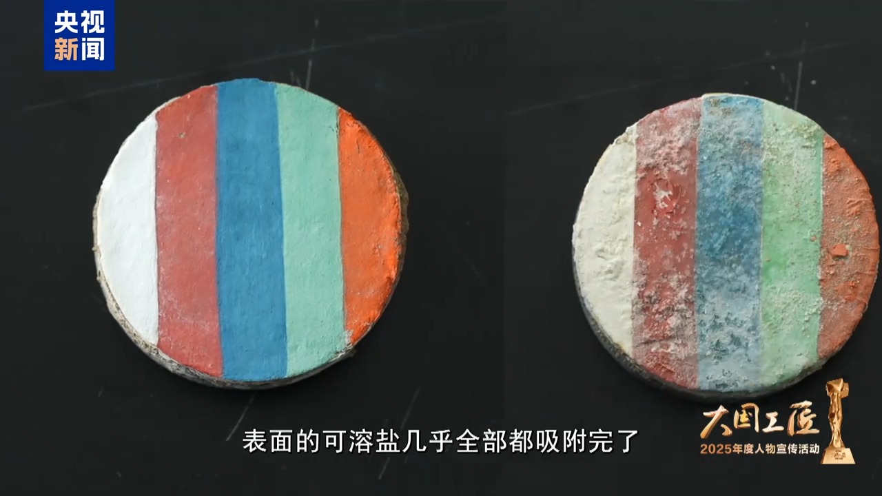 敦煌研究院 樊再軒:那段時(shí)間就看什么都像脫鹽材料,想起來就試,后來有時(shí)候會(huì)想:面粉也行吧?面粉不行,面粉有黏結(jié)力。突然想到那個(gè)白口布、棉布、線手套也可以用……想起來我們就試、想起來我們就試。
